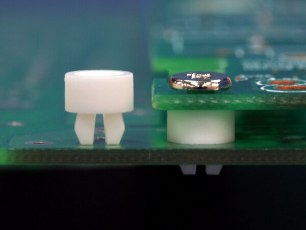 This spacer nut fits into a squared panel hole of 4.5 x 4.5 mm and expands when a self-tapping crew of 2.9 mm is installed. Spacer length is 3.5 mm.