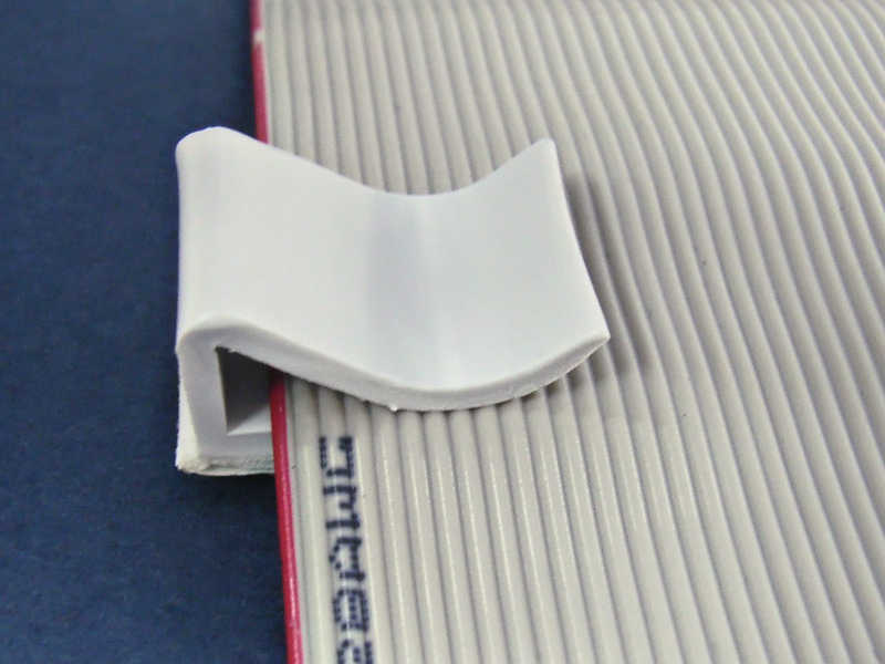 Adhesive Flat Ribbon Cable Clip. Base 25.4x25mm. Height 9.3mm PVC. Color Gray. Spring loaded to hold cable firmly in position.