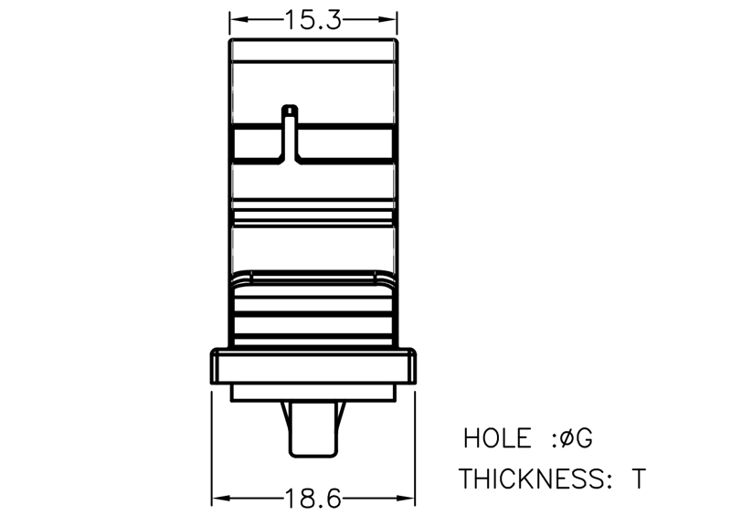 Blind Hole Mount Lock Hinged Flat Cable Lock Clamp (WxH) 44.5×14.8mm. Cable Width 31.8mm. Mounting Hole dia 6.5mm. Max. Chassis Thickness 0.8-1.6mm. Nylon 66. Available in Natural or Black.