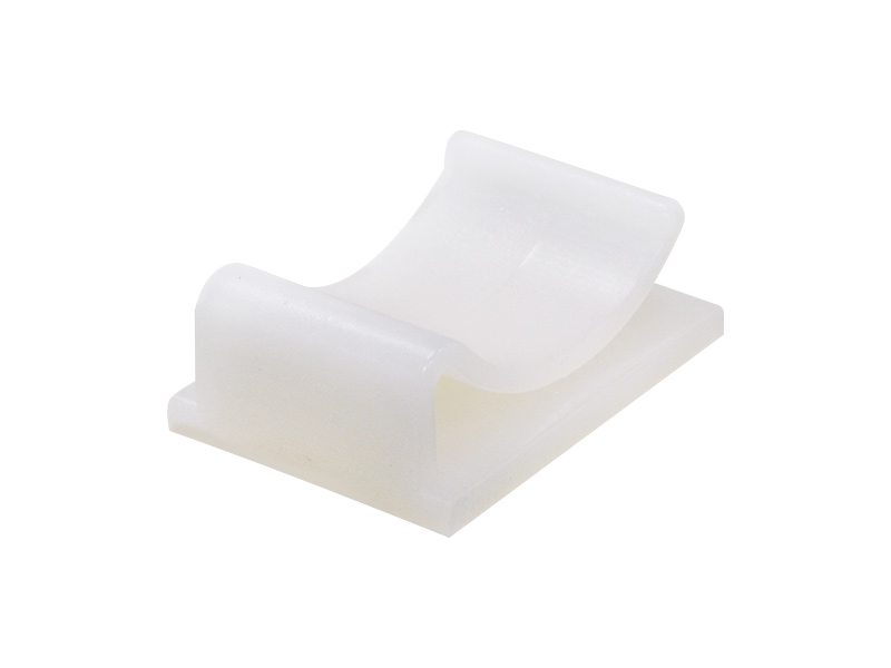 Adhesive Flat Ribbon Cable Clip. Base 27x15mm. Height 8.8mm Nylon 66. Available in Natural and Black. Spring loaded to hold cable firmly in position.
