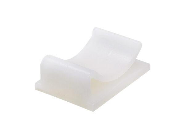 Adhesive Flat Ribbon Cable Clip. Base 27x20mm. Height 8.8mm Nylon 66. Available in Natural and Black. Spring loaded to hold cable firmly in position.