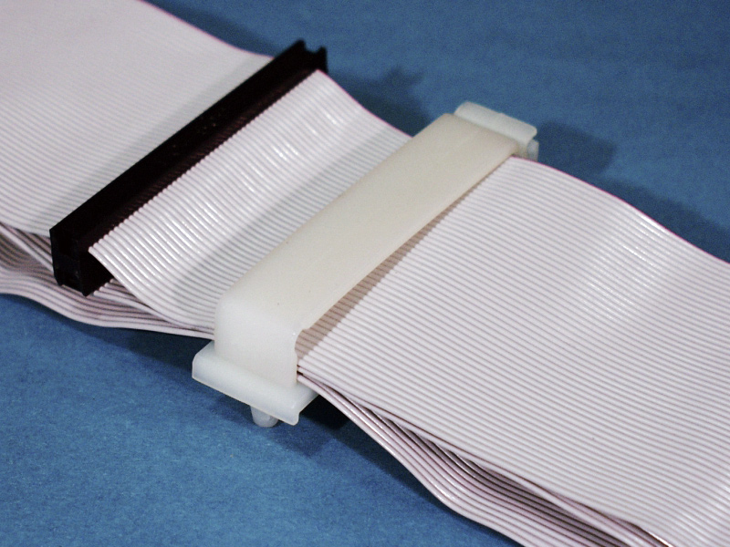 Dual Ø4.8mm hole size Snap-Lock Hinged Flat Cable Clamp (WxH) 77.4×9.9mm. Max. Cable Width 64.0mm. Snap-Lock Centerline Pitch 64.5mm. Chassis Thickness 0.8-2.2mm. Nylon 66. Available in Natural or Black.