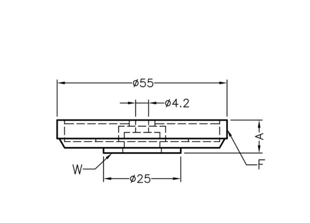 ABS Foot with Silver Aluminum Edge Ø55.0×9.7mm with Rubber pad for equipment protection. Screwable by central Ø4.2mm hole. The Aluminum Covering gives a refined and elegant look