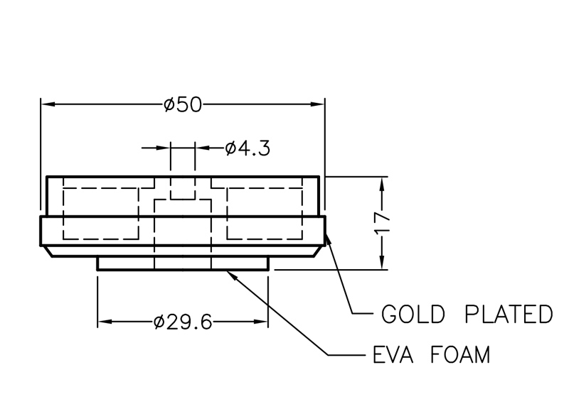ABS Foot with Golden Edge Ø50.0×17.0mm with EVA foam pad for to prevent sliding. Screwable by central Ø4.3mm hole. The Golden Covering gives a refined and elegant look