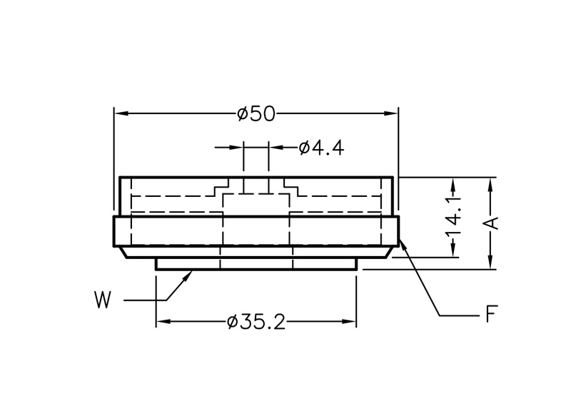 ABS Foot with Golden Edge Ø50.0×16.2mm with EVA foam pad for to prevent sliding. Screwable by central Ø4.4mm hole. The Golden Covering gives a refined and elegant look
