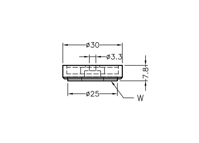 ABS Foot Black Ø30.0×7.8mm with EVA foam pad for to prevent sliding. Screwable by central Ø3.3mm hole.