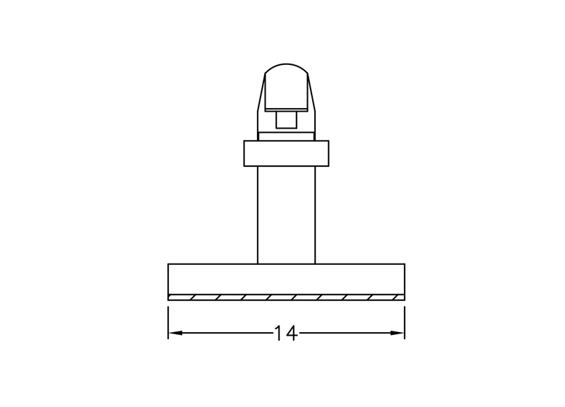 Self Adhesive Spacer Arrowhead Snap Lock. Height 5.6mm. Top Hole dia. Ø 3.5mm. Thickness 1.2-1.6mm. Material Nylon 66. Color Natural/Black.