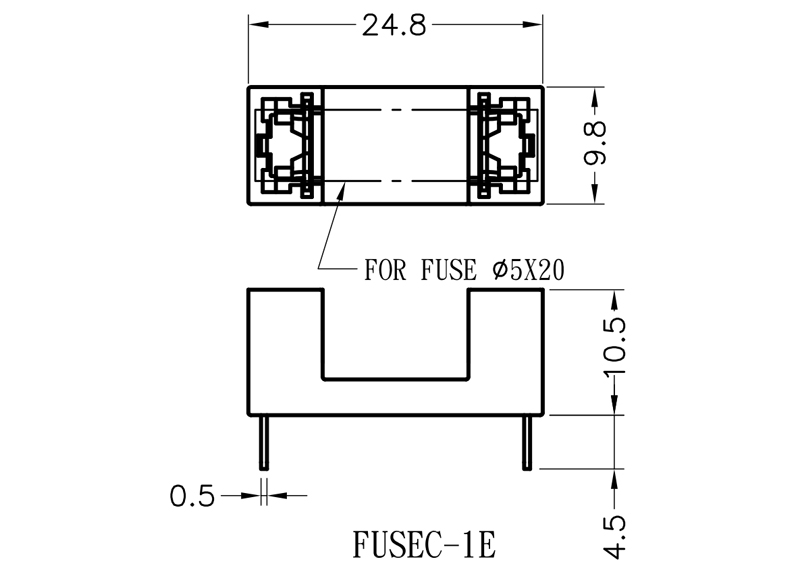 Through Hole Mouning (THM) Low Profile Fuse holder for 5x20mm fuses. Housing material PA66. The lid protects and insulates the fuse. Color Black.