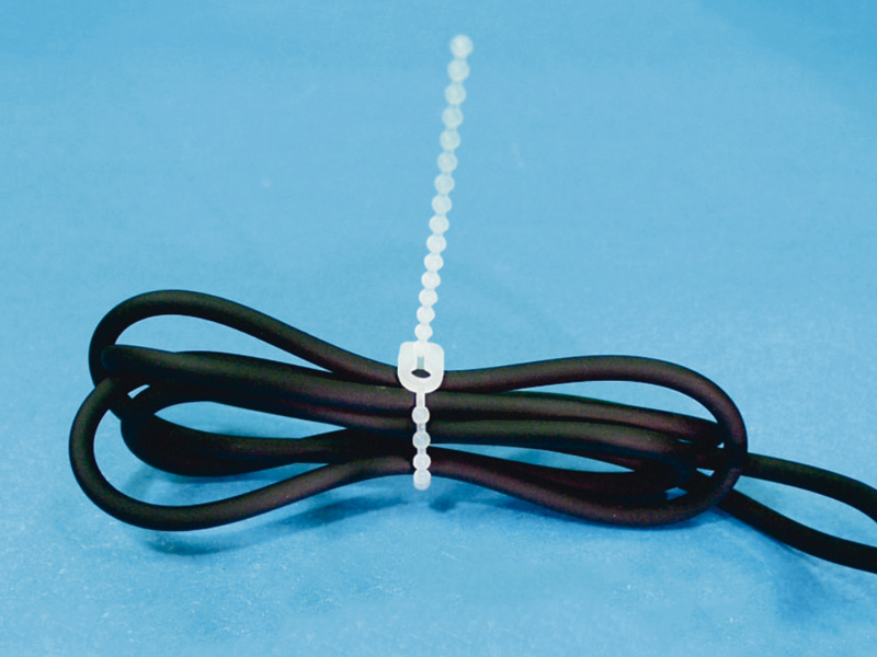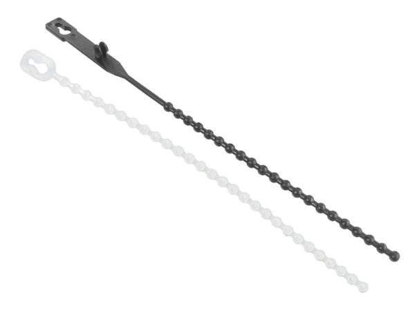 Nylon 66 Beaded Tie In-Line Locking. For organizing cables or hoses, offering flexible, adjustable fastening. Length 70.0mm. Color Natural/Black