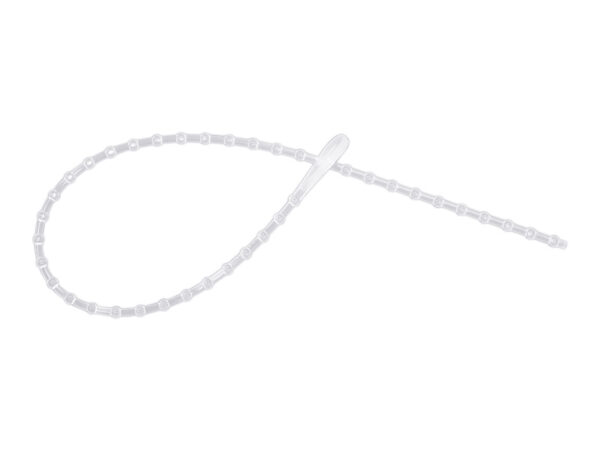 Polypropylene Beaded Tie In-Line Locking. For organizing cables or hoses, offering flexible, adjustable fastening. Length 273.1mm. Color Natural