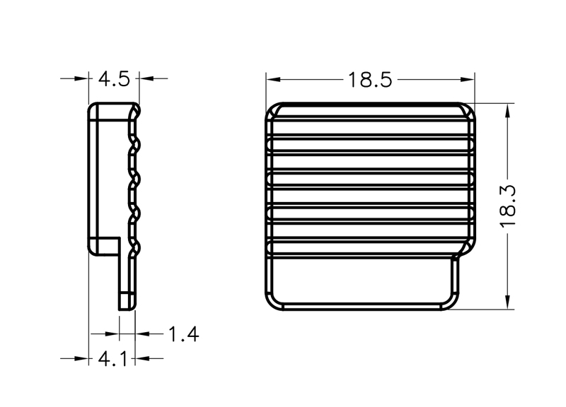 End cap for lever mechanism release handle. Material Black Polycarbonate + ABS. For Latchsize (WxH) 15.8×1.3mm
