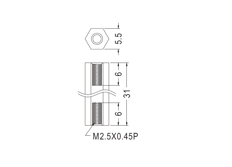 Metric tapped hex Nylon 66 spacer, female/female with an M2.5 metric throughout their length. Standoff height is 31,0mm.
