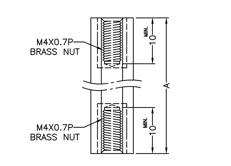 Metric tapped hex Nylon 66 spacer female/female with M4 metric brass threaded insert on both ends with 10.0 mm thread depth per end for higher mechanical retention. Spacer body length is 35 mm.