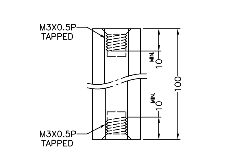 Tapped hex Nylon 66 spacer, female/female, M3 metric threads on both ends with 10 mm thread depth per end. Standoff height is 22.2 mm.