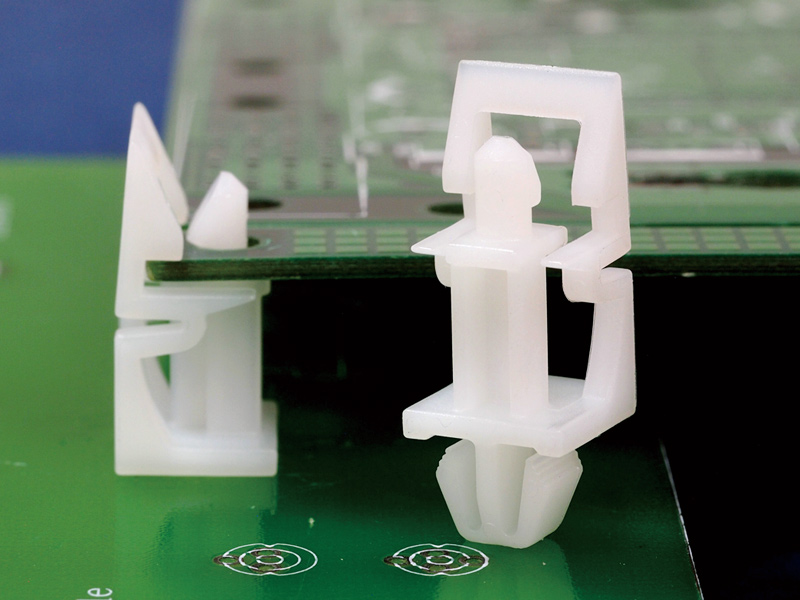 Edge Mount Spacer Nose Hold Snap Lock. Nylon 66. Color Natural/Black. Chassis Hole 5.5×5.5mm. Height 12.0mm. Thickness 1.0-1.8mm. Top Hole 4mm. Thickness 1.6mm