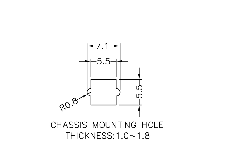 Edge Mount Spacer Hold Snap Lock. Nylon 66. Color Natural/Black. Chassis Hole 5.5×5.5mm. Thickness 1.0-1.8mm