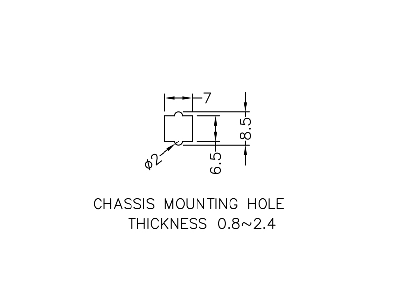Edge Mount Spacer Hold Snap Lock. Nylon 66. Color Natural/Black. Chassis Hole 7.0×6.5mm. Thickness 0.8-2.4mm