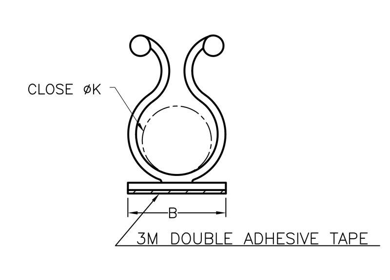 Twist Lock/Purse Lock Self Adhesive base 25.2x13mm. Nylon 66. Bundle Holding dia. Ø19mm. Color Natural or Black.