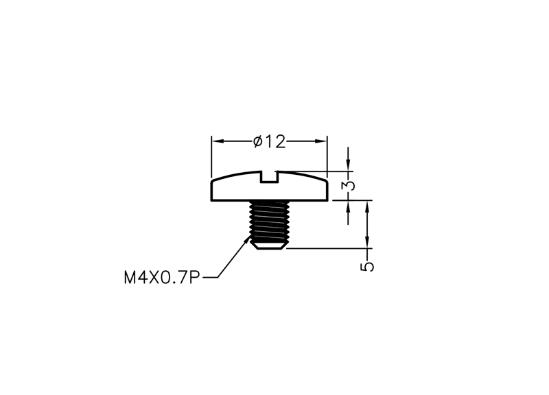 Male Slotted Metric Polyethylene M4 Book Screw. Length 5.0mm Head Ø 12.0mm. Will join together with a Female Post . Book Screws are used to securely fasten together multiple sheets of material, such as cardstock.