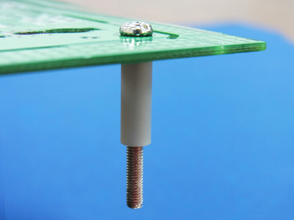 Nylon retaining spacers are similar to the non-threaded spacers, but with a specially configured ID designed to grip the screw shank. This spacer remains attached to the M3 screw for a quick and easy assembly. Spacer length is 19 mm.