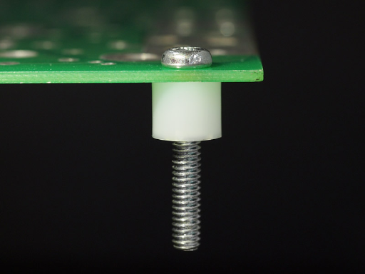 Nylon retaining spacer similar to non-threaded spacer, but with a specially configured ID designed to grip the screw shank. This spacer remains attached to the M5 screw, for quick and easy assembly. Standoff height is 9.5mm.