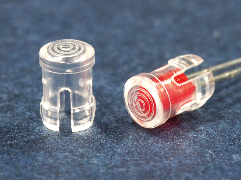 Snap-In Fresnel Lens Cap for 3mm LED. Transparent Polycarbonate. Mounting hole 4.4mm. Panel Thickness 1.57-3.2mm