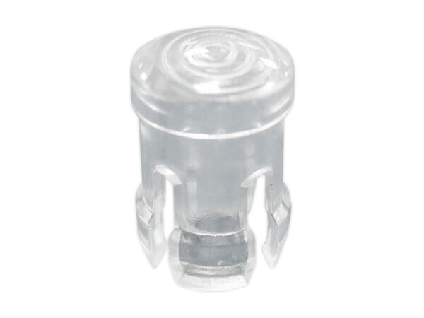 Snap-In Fresnel Lens Cap for 3mm LED. Transparent Polycarbonate. Mounting hole 4.4mm. Panel Thickness 1.57-3.2mm
