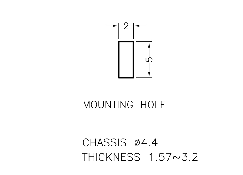Snap-In Rectangular Lens Cap 5x2mm for 3mm LED. Transparent Polycarbonate. Mounting hole Ø 4.4mm. Panel Thickness 1.57-3.2mm