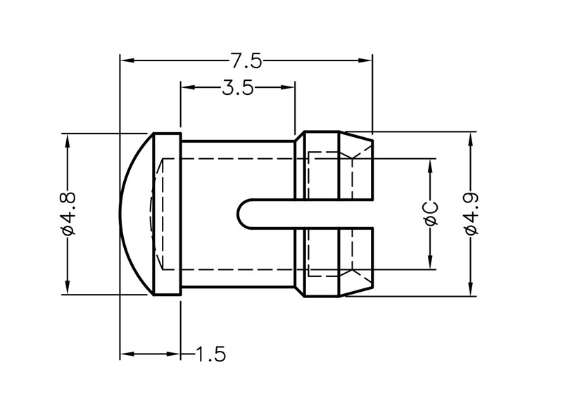 Snap-In Fresnel Lens Cap for 3mm LED. Transparent Polycarbonate. Mounting hole Ø 4.4mm. Panel Thickness 1.2mm