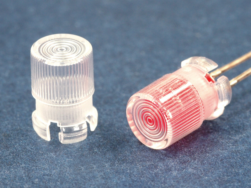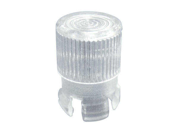 Snap-In Fresnel Lens Cap for 5mm LED. Transparent Polycarbonate. Mounting hole Ø 6.35mm. Panel Thickness 3.0mm