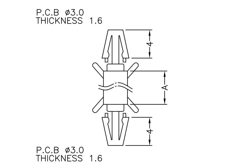 Arrowhead dual locking support post with tension wings. For a top and bottom hole of 3 mm. Spacer length is 6.3 mm.