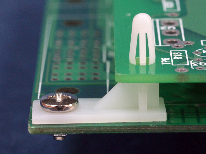 Spacer L-Profile Bayonet Snap Lock Screw Mount. Height 8mm. Panel Hole dia. Ø4.0mm. Thickness 1.6-1.8mm. Material Nylon 66. Color Natural/Black