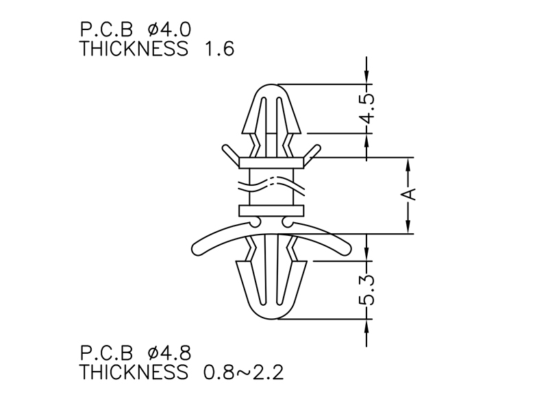 Arrowhead dual locking support post with tension wings. For a top hole of 4 mm and a bottom hole of 4.8 mm. Spacer length is 4 mm.