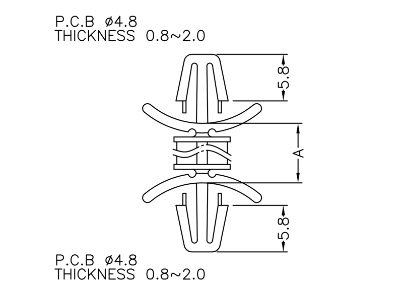 Arrowhead dual locking support post with tension wings. For a top and bottom hole of 4.8 mm. Spacer length is 6.4 mm.