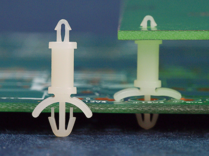Dual locking support post. Snap lock top hole fix for 2 mm and bottom hole arrowhead with tension wing for 3~3.2 mm. Standoff height is 17 mm.