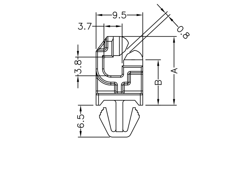 Spacer Edge Hold Lock Snap Lock. Chassis hole 5.5×5.5mm. Chassis Thickness 0.8-1.8mm. Height 18mm. Nylon 66. Color Natural/Black