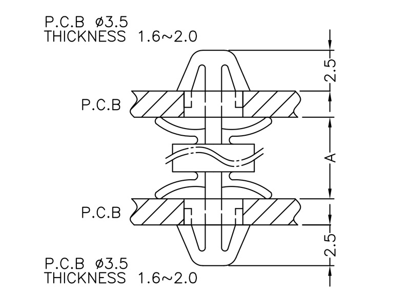 Arrowhead dual locking support post with tension wings. For a top and bottom hole of 3.5 mm. Spacer length is 5 mm.