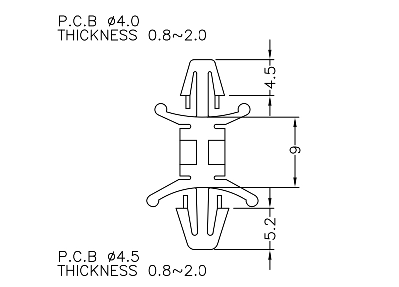 Arrowhead dual locking support post with tension wings. For a top of 4 mm and bottom hole of 4.5 mm. Standoff height is 9 mm.