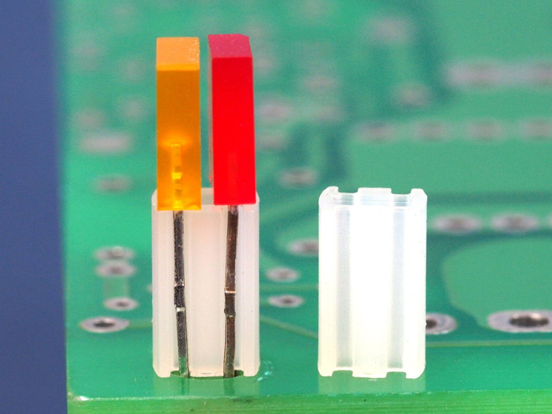Rectangular LED spacer for 2 rectangular LED’s. Nylon 66. Height 8.1mm. Available in Natural and Black