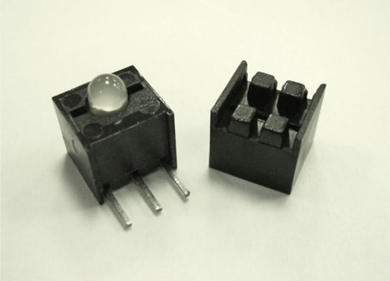 LED Holder PA66 Right Angle PCB Mount for LED size 3mm(T-1). Centerline 4.0mm. Gives consistent height and support to LED. LED’s shown for Demo not included in holder