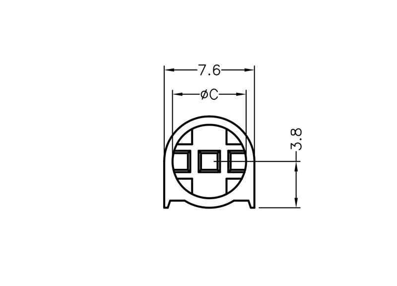 LED Support PA66 Right Angle PCB Mount for 3 lead LED size 5mm(T-1¾). Centerline 3.8mm. Gives consistent height and support to LED. LED’s shown for Demo not included in holder
