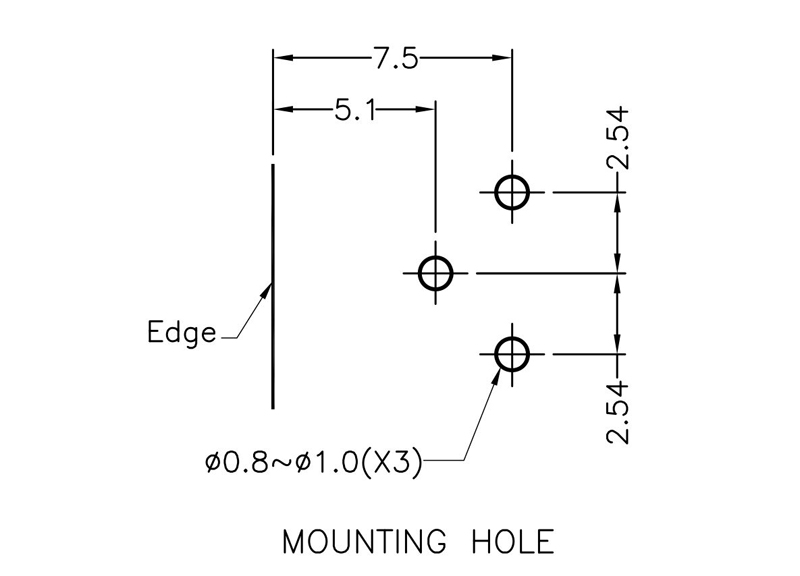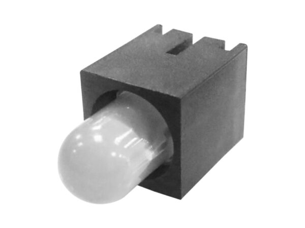 LED Support PA66 Right Angle PCB Mount for 3 lead LED size 5mm(T-1¾). Centerline 3.6mm. Gives consistent height and support to LED. LED’s shown for Demo not included in holder