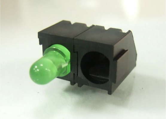 LED Holder PA66 Right Angle PCB Mount for LED size 3mm(T-1) with Interlocking feature. Centerline 3.1mm. The Interlocking feature creates a LED holder array . LED’s shown for Demo not included in holder