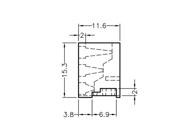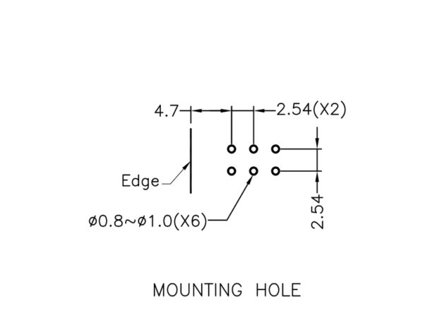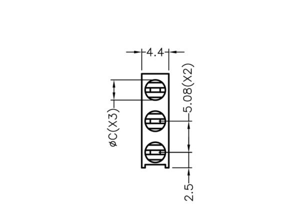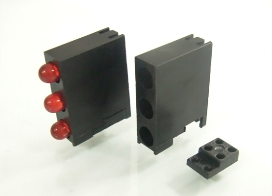 Right Angled 3 stack LED holder for LED size 3mm(T-1). Centerline bottom LED 2.5mm. Distance between LED’s 5.08mm. LED’s shown for Demo not included in holder
