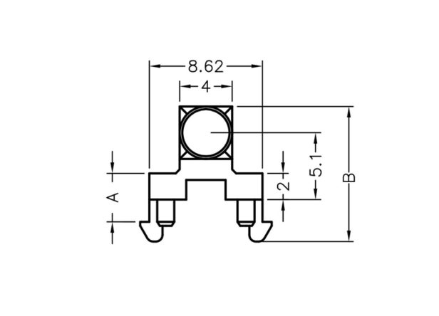 Right Angled 90° PCB Snap-Fit Mount single station Light Pipe for SMD LED. Material Polycarbonate. Round Flat Lens diameter Ø4.0mm.