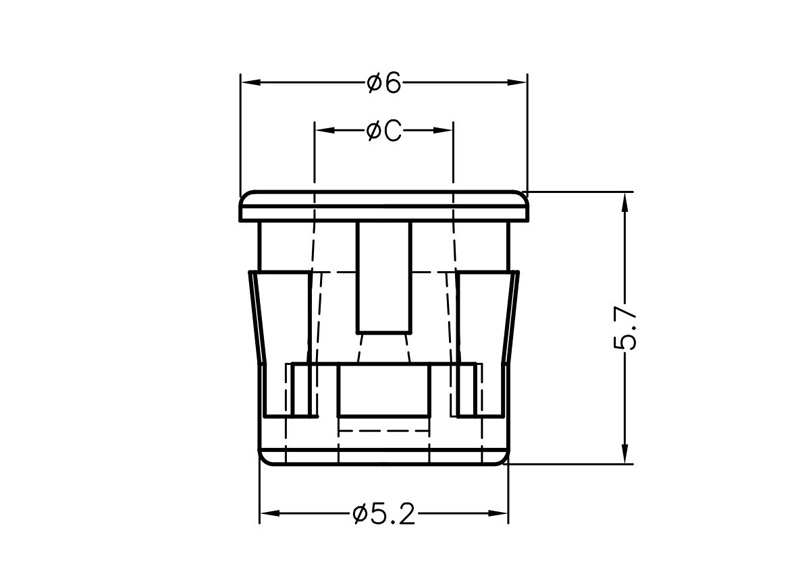 LED Snap-Fit Panel Mount housing for 3mm Bi-Lead LED. Panel hole size Ø5.2mm. Panel Thickness 0.8-1.0mm. Material Nylon 66. Color Black. Matte Textured Surface