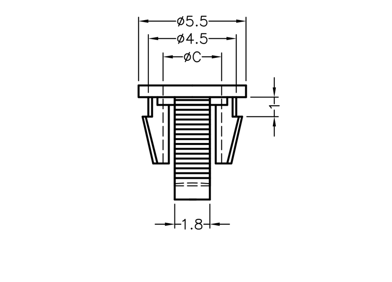Snap In LED holder for LED size 3mm (T1). Chassis hole size Ø4.5mm. Chassis Thickness 1.0mm. Length protrusion 4.4mm. Material Nylon 66. Color Black