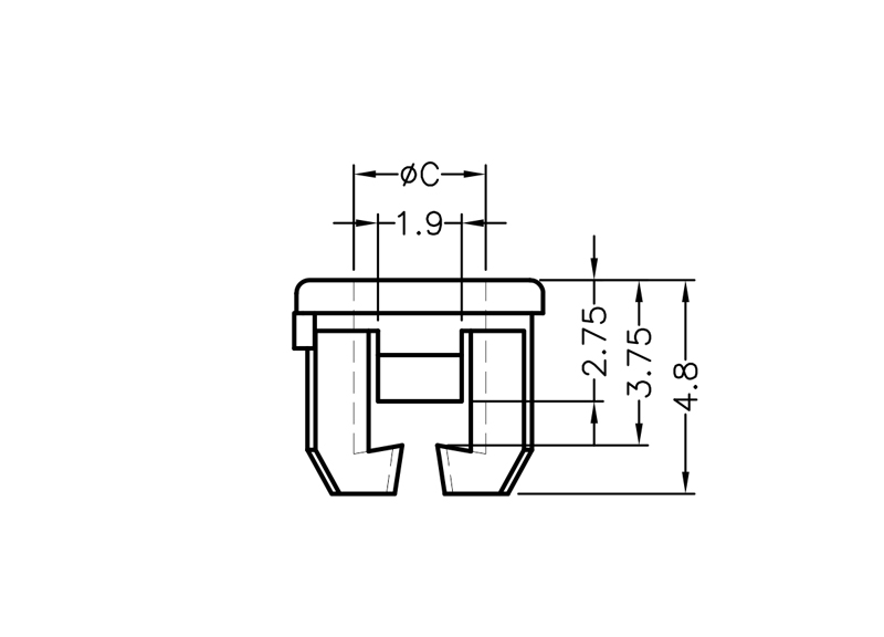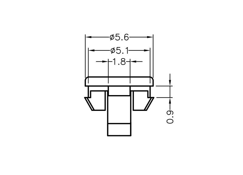 LED Snap-In Panel Mount housing for 3mm LED. Slotted Hole size Ø5.2mm. Panel Thickness 0.8mm. Material Nylon 66. Color Black