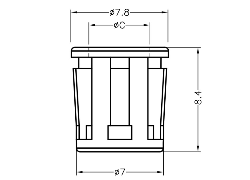 Snap-Fit Panel Mount housing for 5mm Bi-Lead LED. Panel hole size Ø7.0mm. Panel Thickness 0.8mm. Material Nylon 66. Color Black.