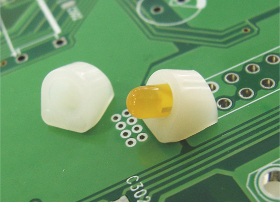 LED Holder PA66 120 degree PCB Mount for LED size 3mm(T-1). Gives consistent height and support to LED. LED’s shown for Demo not included in holder